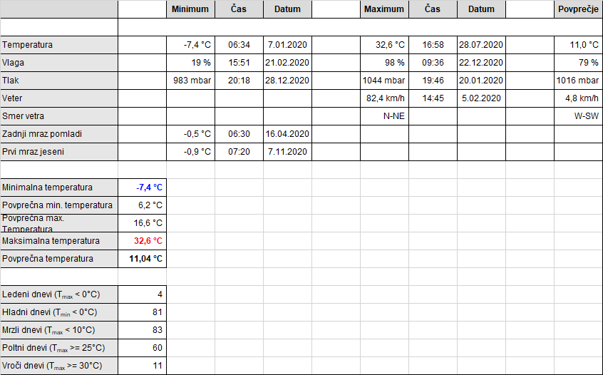 Meteorološki podatki te meteorološke postaje so neuradni podatki, meteorološka postaja pa ni del državne mreže Agencije Republike Slovenije za Okolje (ARSO), je pa vključena v Vremensko društvo ZEVS. Prikazani podatki so zgolj informativni in nimajo značaja uradnega podatka.